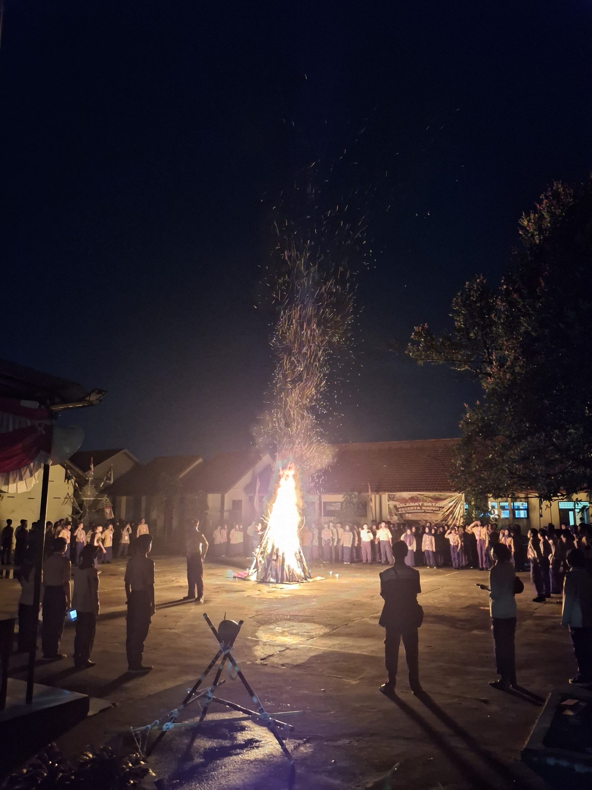 Sorotan utama tentu saja malam api unggun, sebuah tradisi yang selalu menjadi puncak kegiatan. Nyala api yang menjulang di tengah halaman sekolah menciptakan suasana hangat dan akrab, disertai nyanyian, tepuk tangan, dan sorakan semangat dari seluruh peserta.